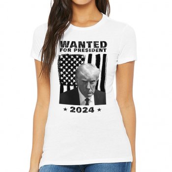 Trump Wanted for President 2024 Slim Fit T-Shirt – Trump Mugshot Graphic Tee