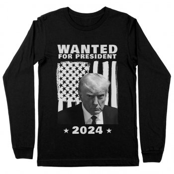 Trump Wanted for President 2024 Long Sleeve T-Shirt – Trump Mugshot Graphic T-Shirt
