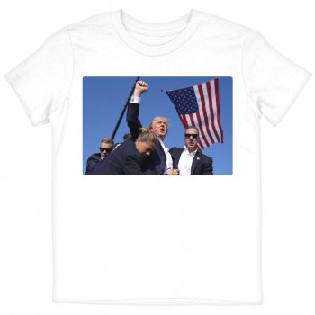 Trump Rally 2024 Fist Kids’ T-Shirt – Trump American Flag Graphic Tee